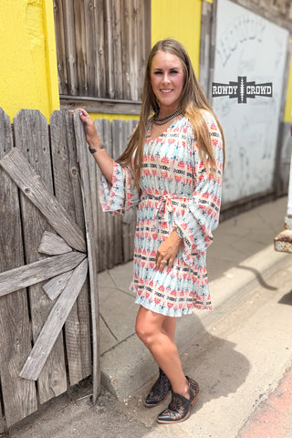 Are you ready to have some fun in our Darlene Dress! This stylish dress features a flawless Aztec print that will make you stand out from the crowd. With long sleeves and a convenient belt, it's not only fashionable but also comfortable. A must-have for any fashion-forward individual!