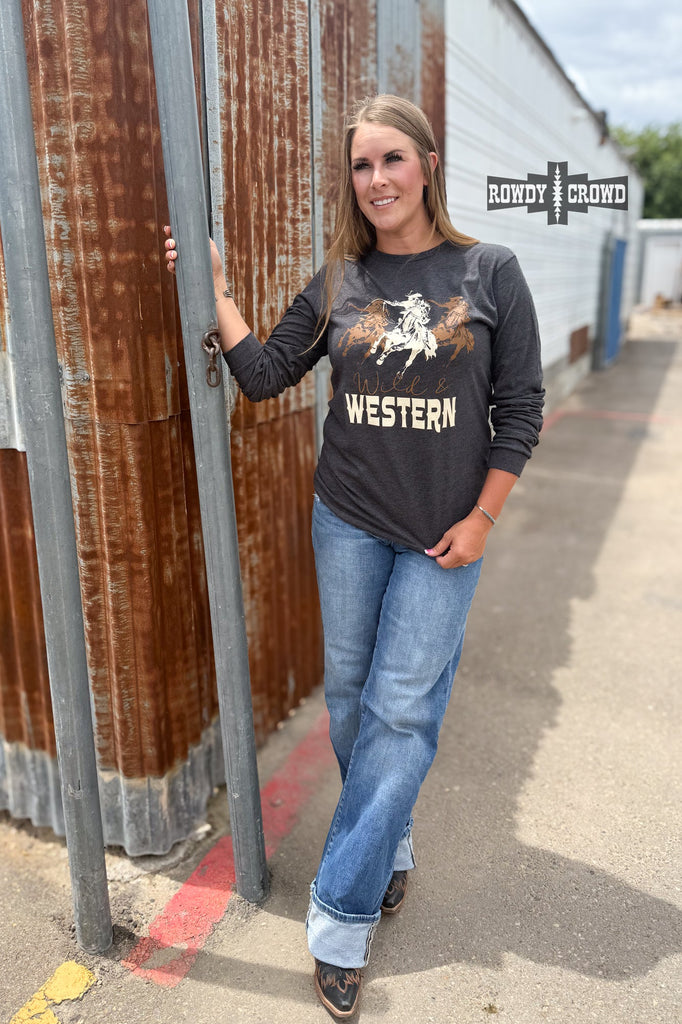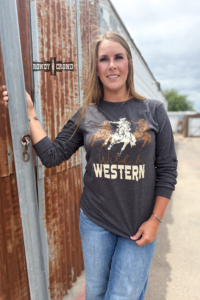 Ride or die in true Western style. The Wild & Western Long Sleeve has a graphic with three cowboy riders kickin’ up dust. It’s bold, comfy, and made for the ones who live loud and ride proud. Pair it with boots and denim and you’re ready to roll.